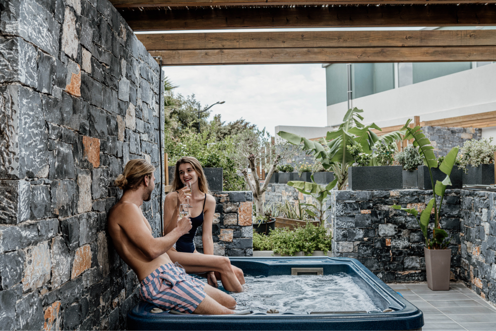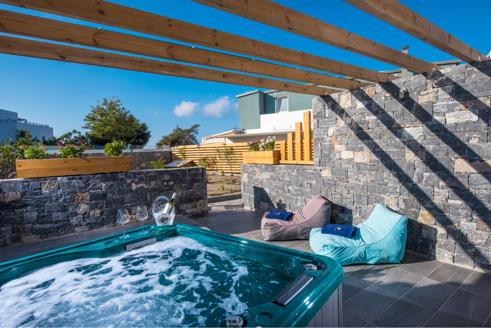 These studios offer a private terrace with a jacuzzi. Furnished with a queen size bed, every room offers stylish white-blue décor, large windows and elegant furnishings. Each room includes a flat-screen TV, a safe box, a minibar, a coffee machine and a private bathroom.